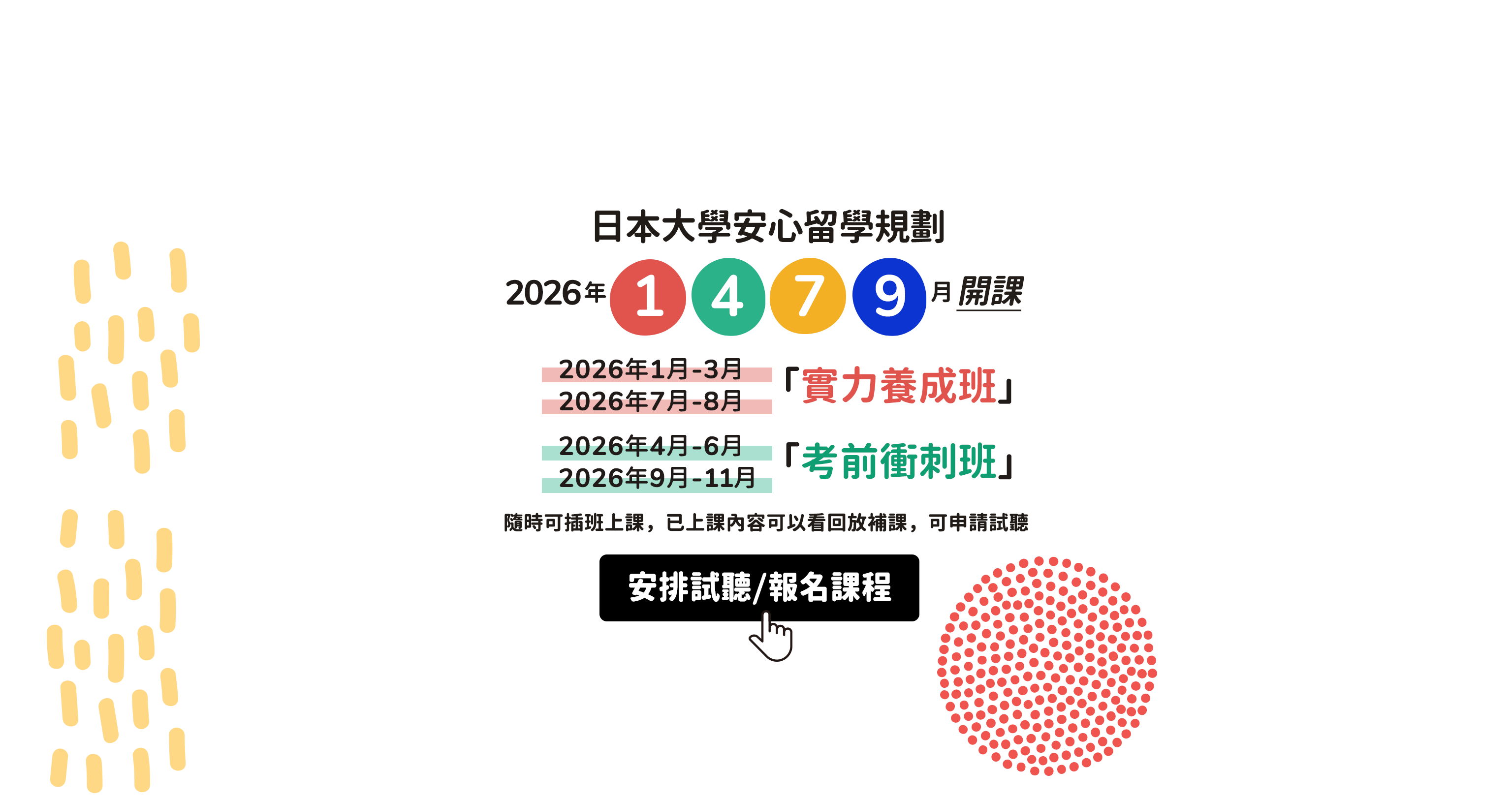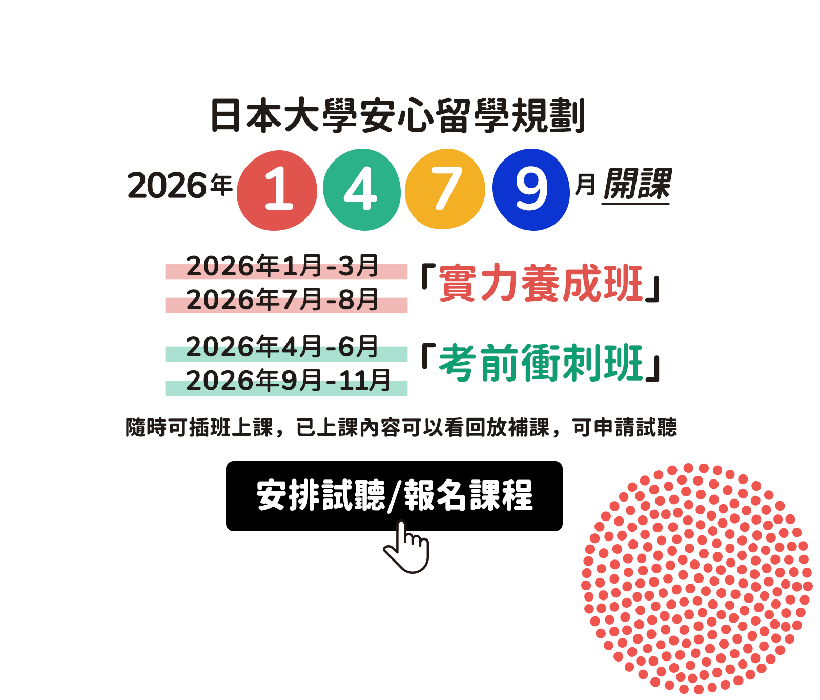 請先加入留學先修班→ 2026EJU線上特訓班開課時程 ↓↓