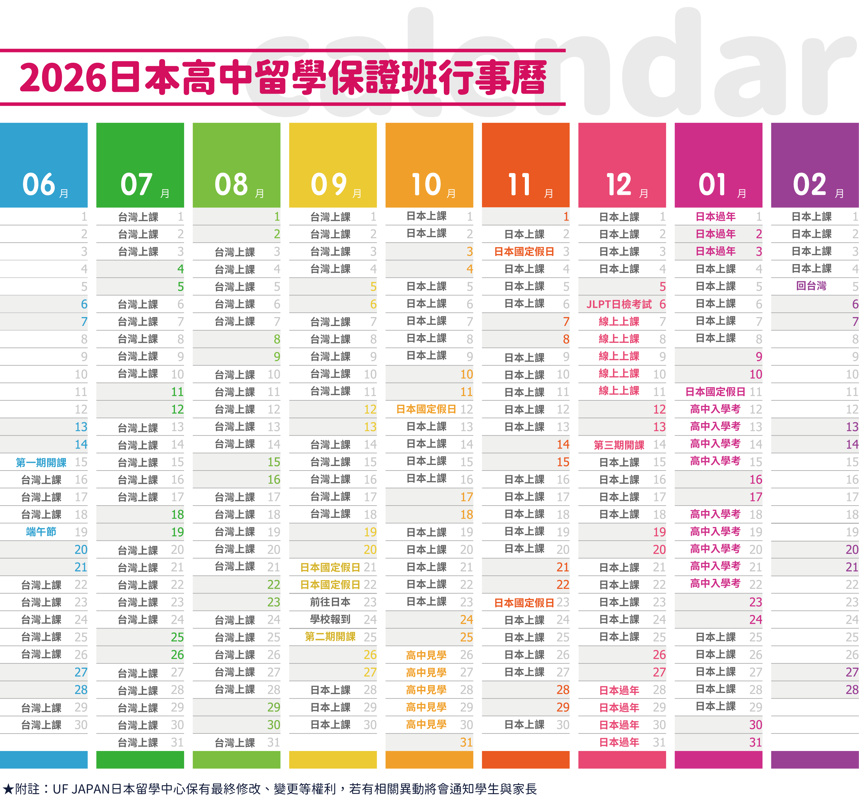 將孩子送出國門的那一刻,就是UF JAPAN責任的開始。我們提供全面的輔導與規劃,消除學生對陌生環境的不安、幫父母減少孩子出門在外的擔心。